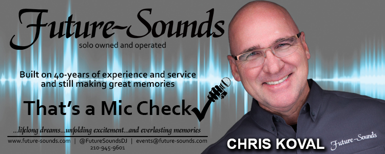 Nearly 40 years of experience and active participation at over 5000 events, are part of the foundation of what we do. Future Sounds owner and solo operator; Chris Koval, has provided services for numerous clients, their families and businesses for years. Many have use our services for years if not decades.Learn more about us now by viewing our website.